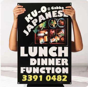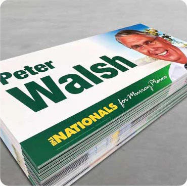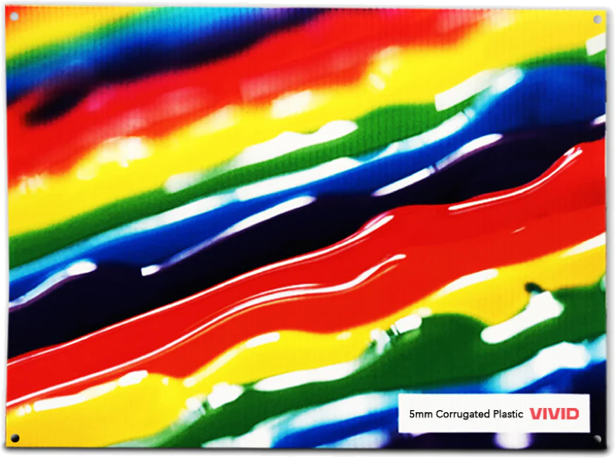 Corrugated plastic polypropylene also known as corflute – a type of plastic – usually 3mm or 5mm in thickness. You’ll most likely have seen corrugated signage used as part of political advertising, by real estate companies advertising local homes, or on temporary construction sites. Because it’s plastic, corrugated/corflute is a great choice for bright colourful printing, especially when your signage needs to stand out in the open.